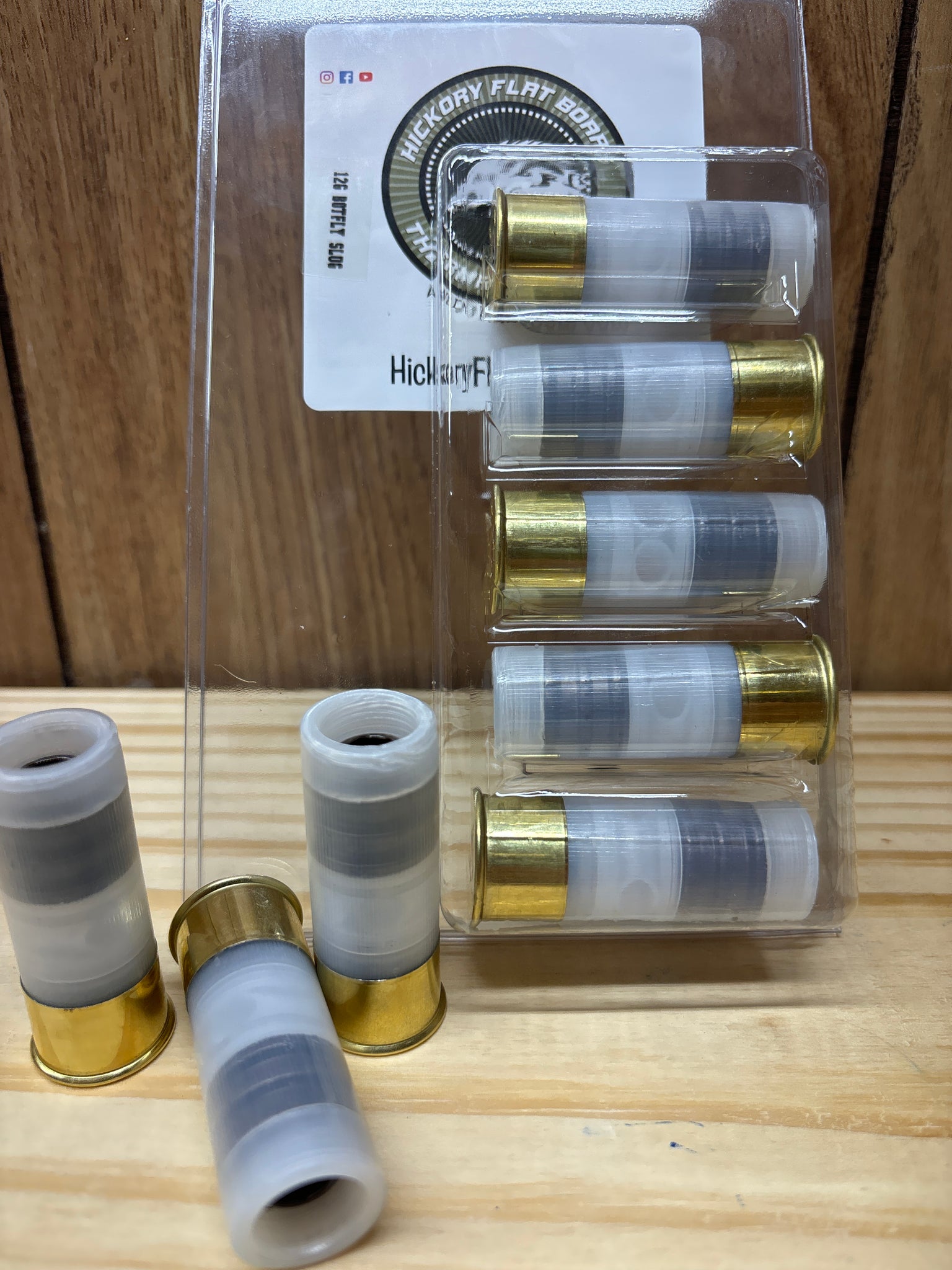 The 12 gauge Botfly Slug features a large hollow point with a deep cavity that delivers great expansion upon target impact. This slug has proven to be accurate out of smooth bore shotguns and is a devastating round for deer and hogs.