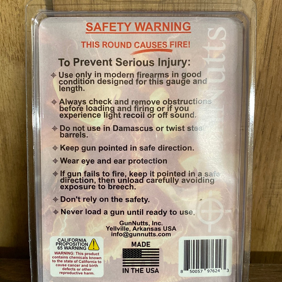WARNING: 12 GAUGE DRAGONS BREATH AMMUNITION WILL PRODUCE A WALL OF FLAME AND ARE AN EXTREME FIRE HAZARD. WE DO NOT RECOMMEND THE USE OF THIS ROUND DURING DRY CONDITIONS.
