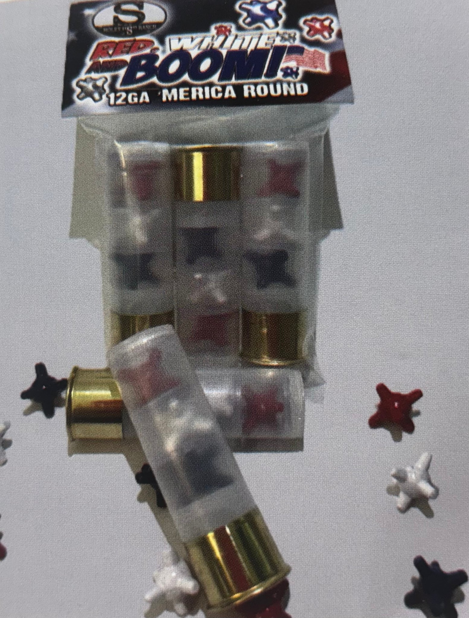 Celebrate being an American with the Red White and Boom 12 gauge round from Holey “S” Ranch. This round is packed with three-red, white and blue colored star shaped projectiles.