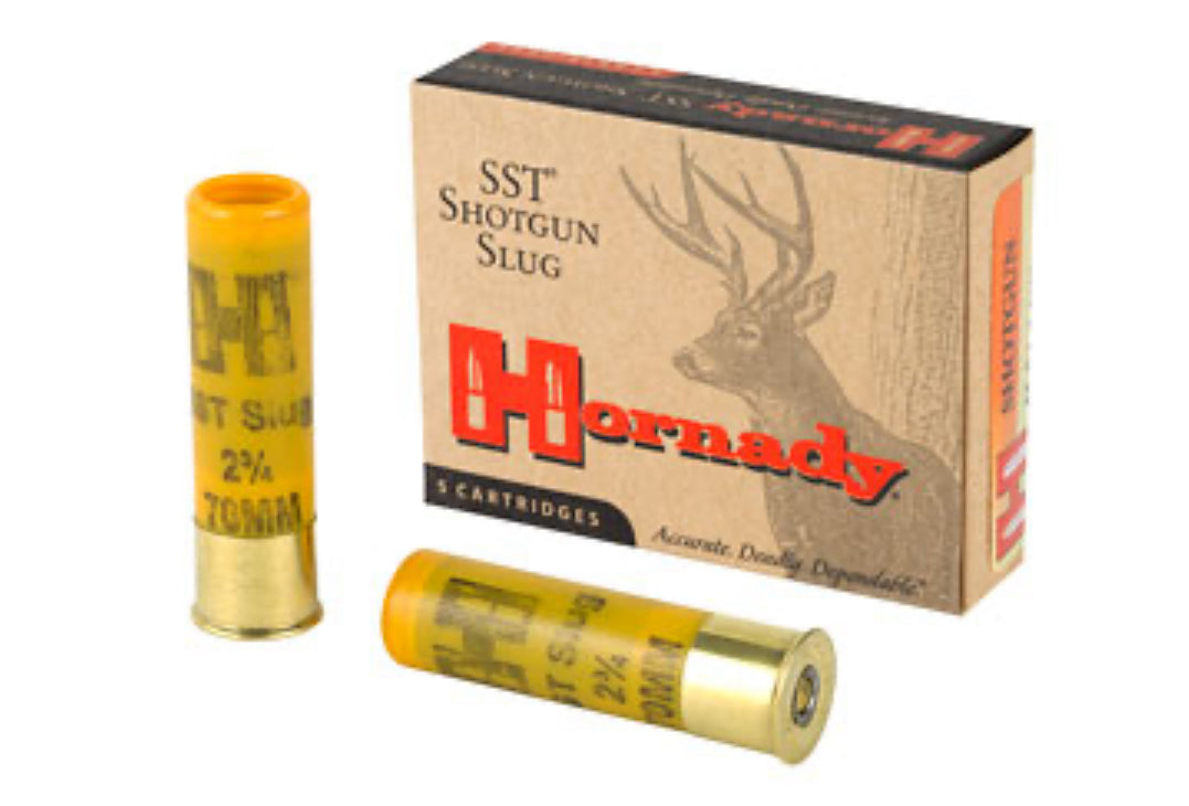 Hornady(R) SST(R) Shotgun Slugs feature patented Flex Tip(R) technology. Take the proven performance of the super-accurate patented bullet and transform your favorite rifled barrel slug gun into a firearm that outperforms some centerfire rifles. In both 12 gauge and the 20 gauge cartridges, Hornady(R) SST(R) Shotgun Slugs deliver sub-2" groups at 100 yards and feature the flattest trajectory on the market.