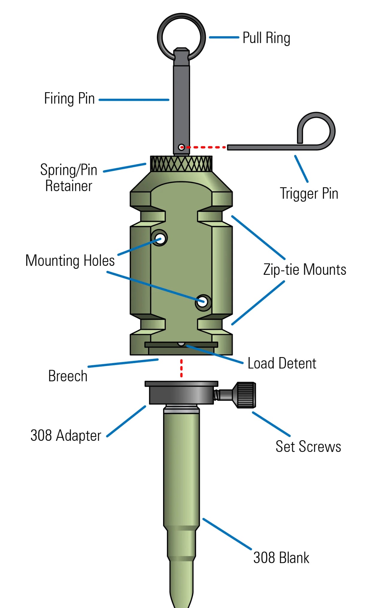 308 7.62x51 NATO Blank cartridges (plastic). To be used in our Gen3 perimeter trip alarms with the 308 adapter only. These will not work in a real weapon like a rifle or in the Gen4 perimeter trip alarm.