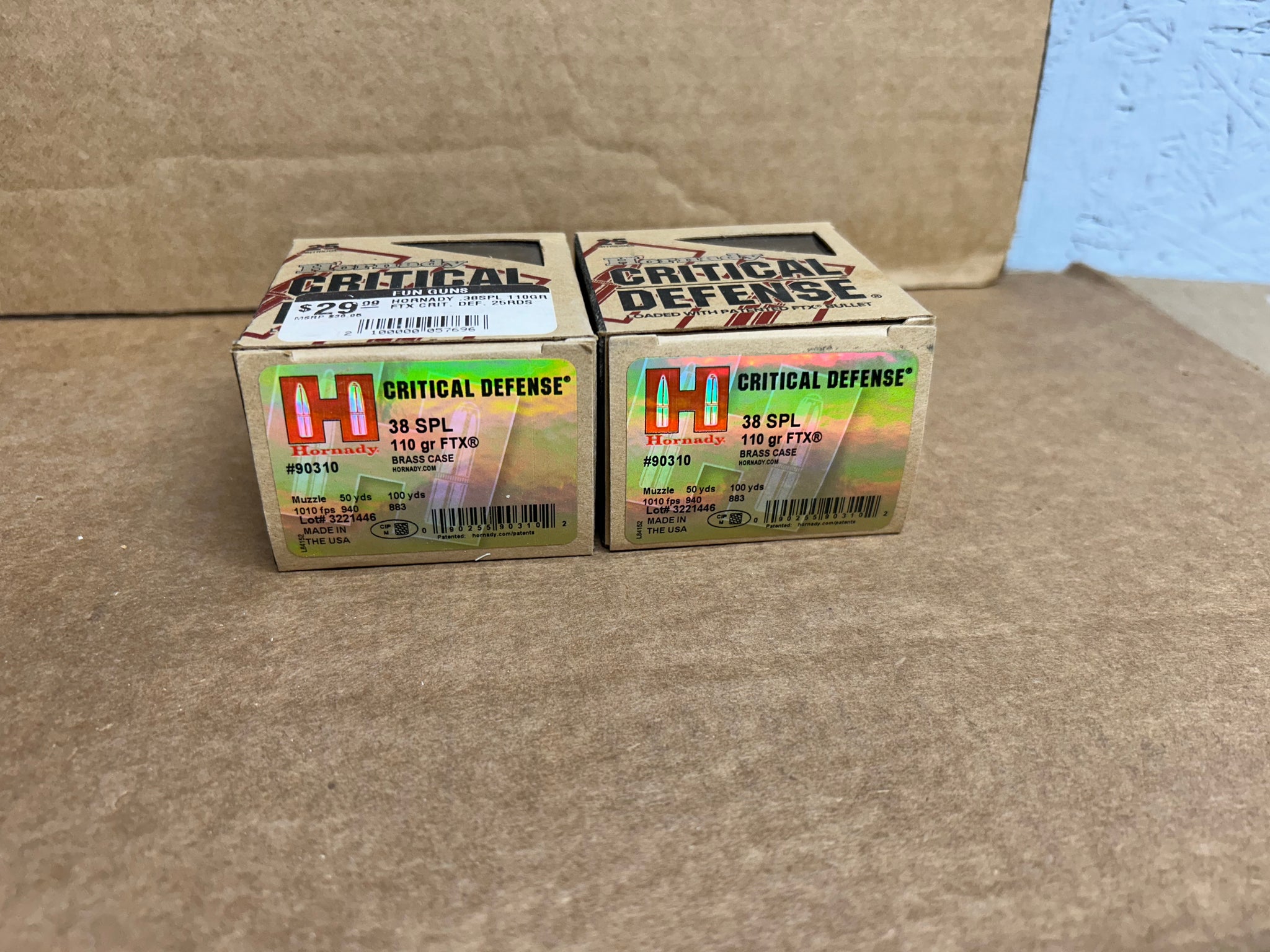 Hornady Critical Defense 38spl 110g FTX. Price is per box 2 boxes.