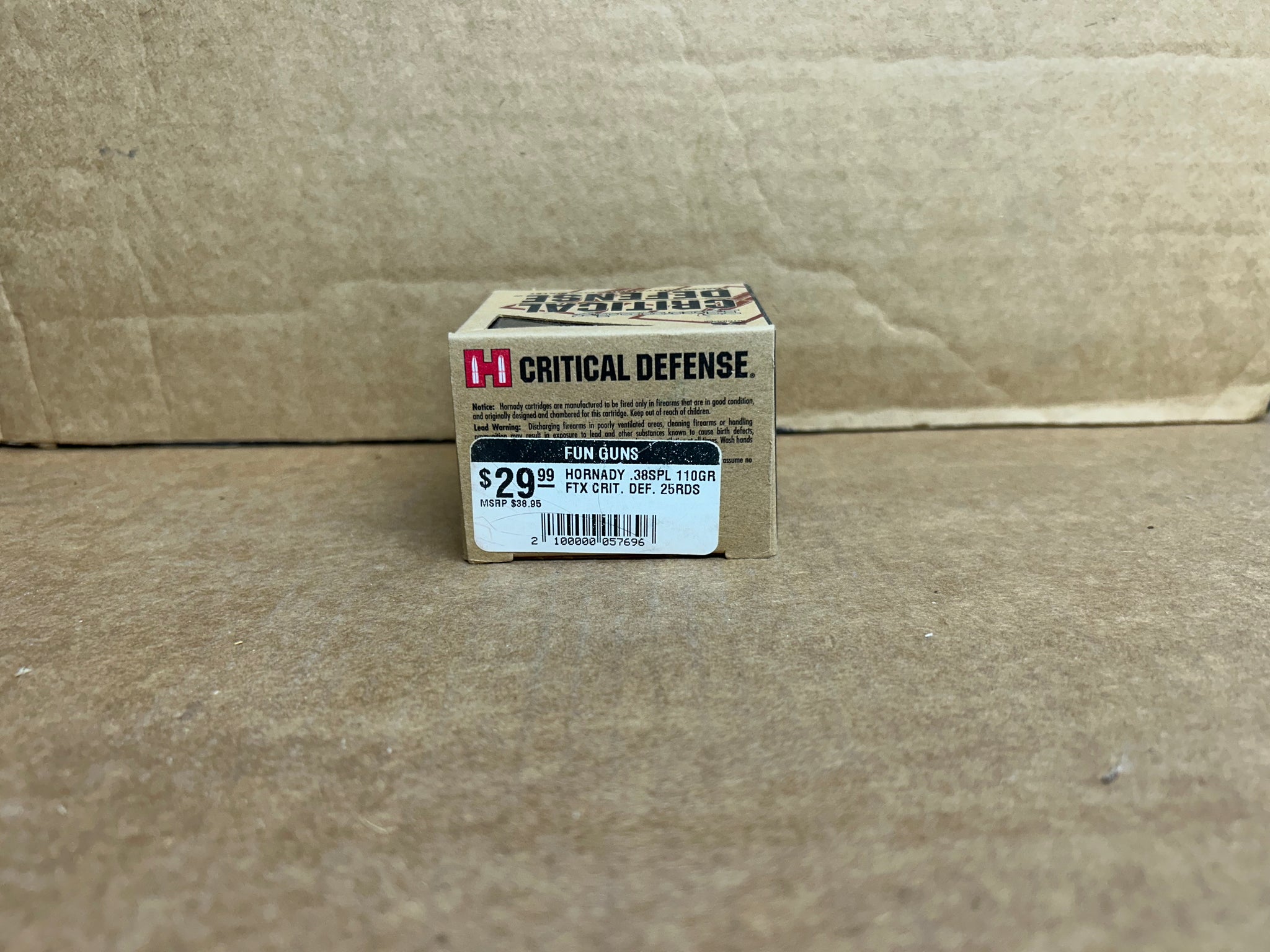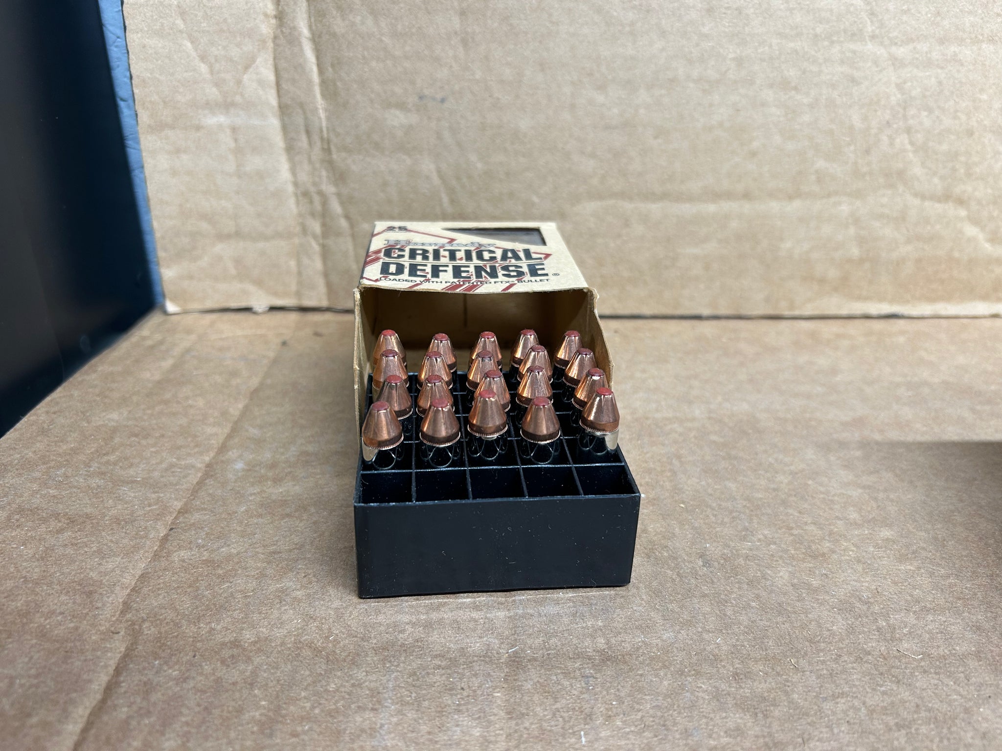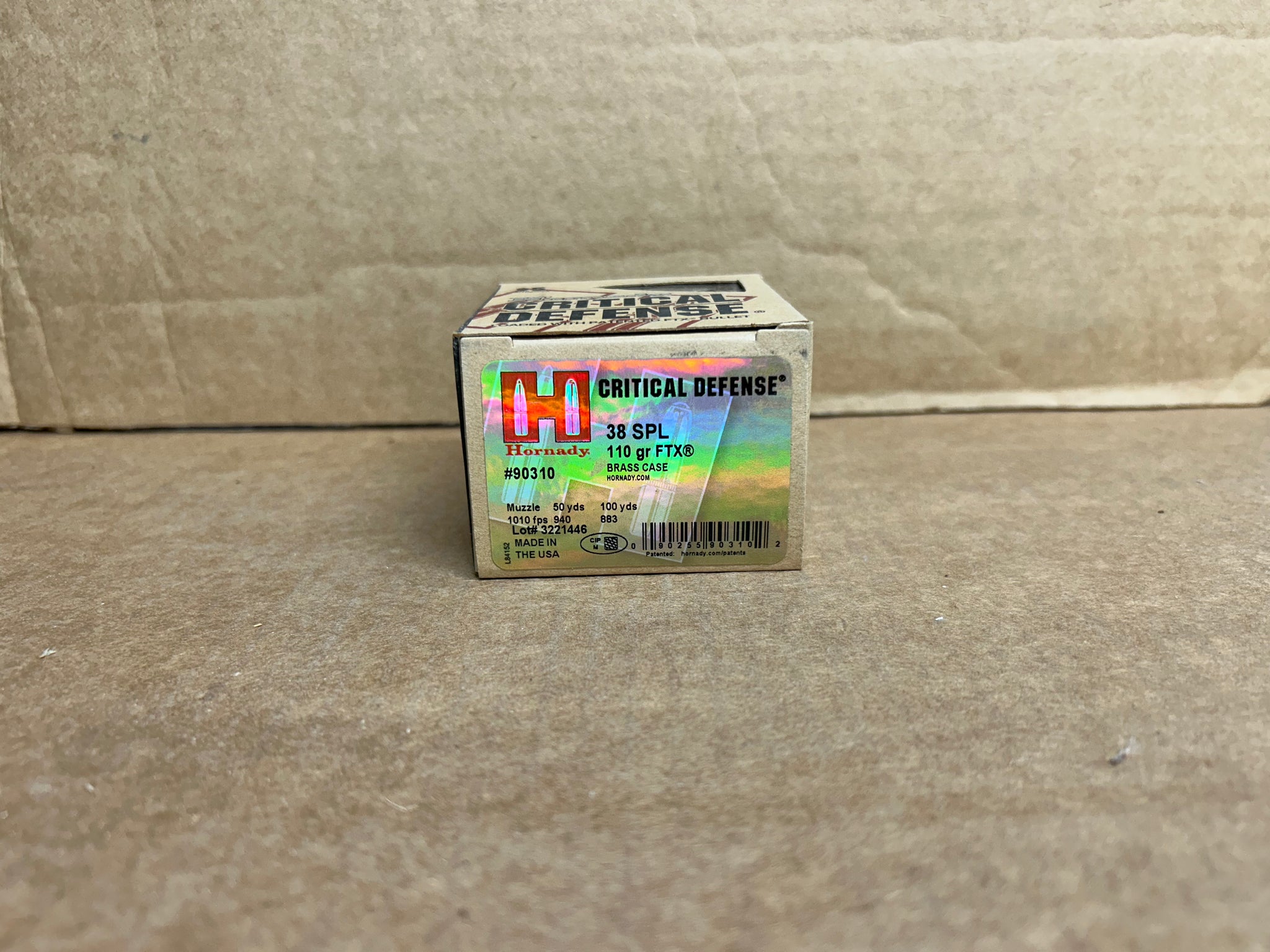 Hornady Critical Defense 38spl 110g FTX. 20 rounds 5 missing. Discounted due to missing rounds.