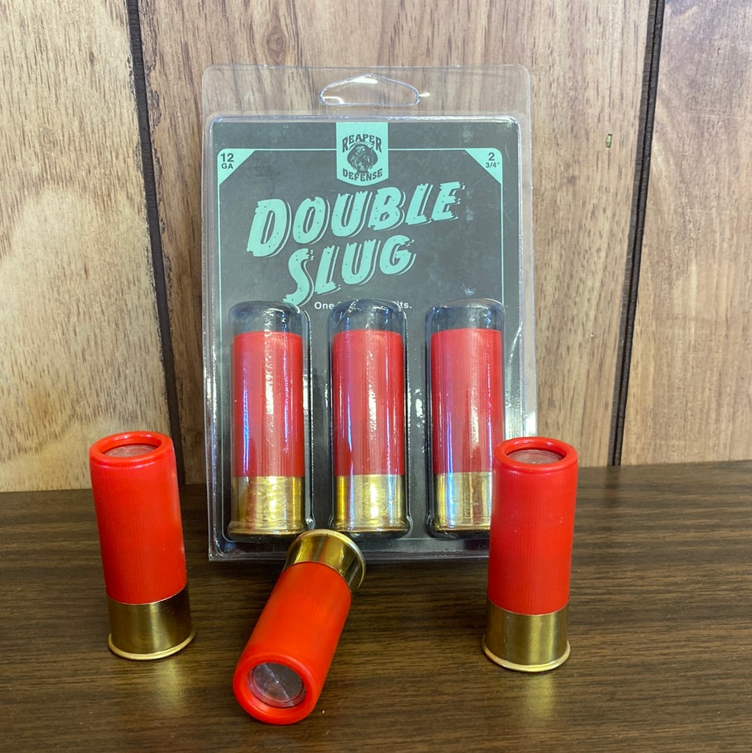 2.75" 12 gauge shells shoot two slugs for double the impact! They spread over time, providing an approximately 2" group at 25 yards, or up to a foot-wide group at 50 yards. Shooting large predators or home invaders with such a cartridge means that the energy and impact will be spread over that much more space, and will really help encourage any threat to get away from you as quickly as possible.