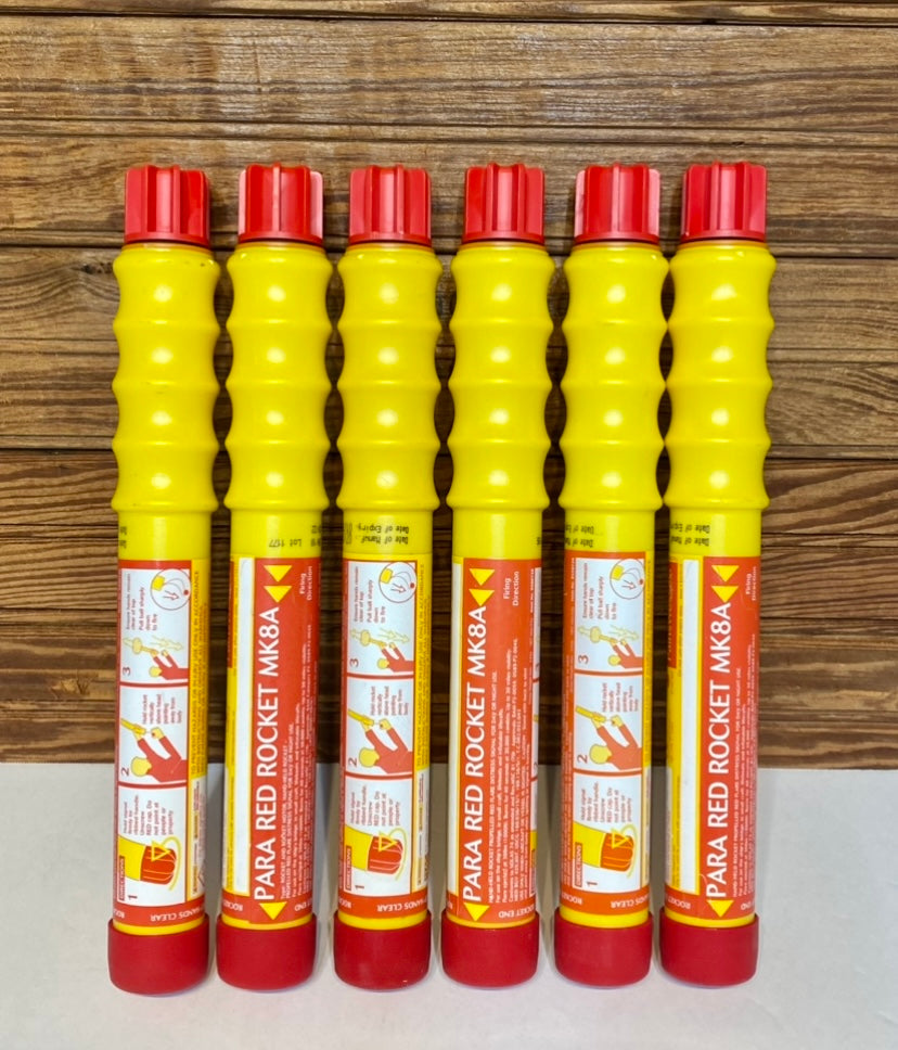 Para Red Rocket MK8A 50672 Para Red 50570, 50671 The Pains Wessex Para Red MK8A Rocket conforms to SOLAS 74/88 as amended. Designed to withstand exceptional environmental exposure and to perform reliably even after immersion in water, the pull wire ignitor and improved grip provides easy handling. Ejecting a red flare on a parachute at 300m (1000ft), burning for 40 seconds at 30,000 candela.