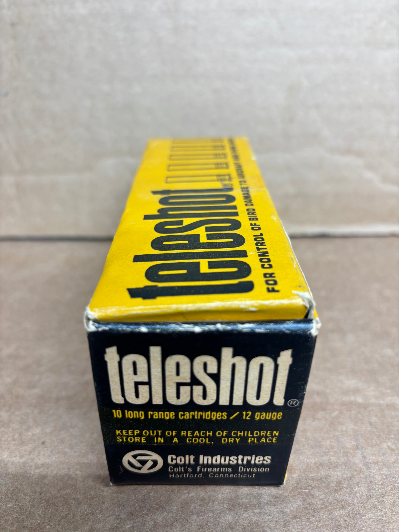 Colt Teleshot 12 gauge ammo box RARE AIR BURST BOX with 10 unfired rounds inside.