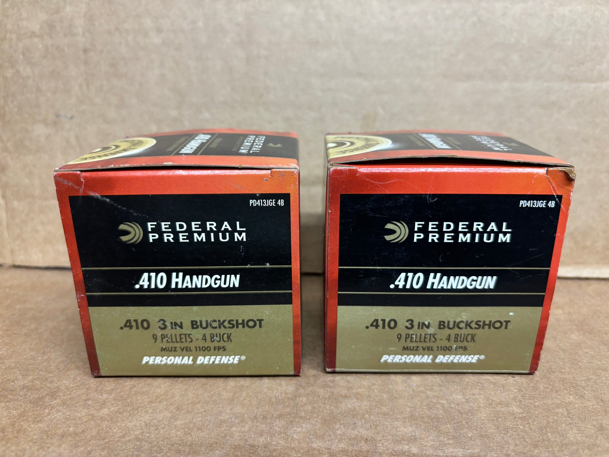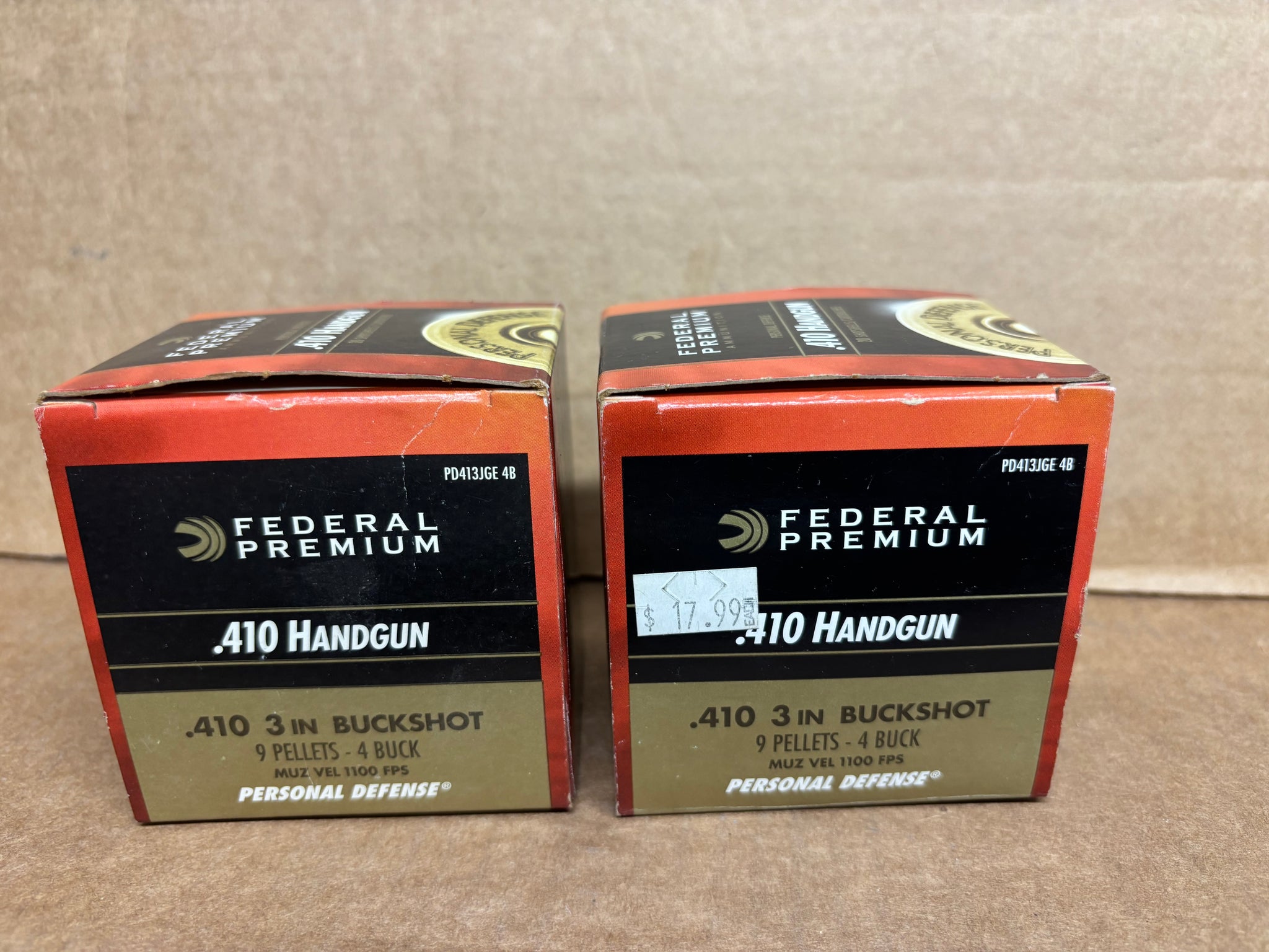 This is a 20 round box of .410 3 inch Handgun Buckshot 9 Pellets-4 Buck